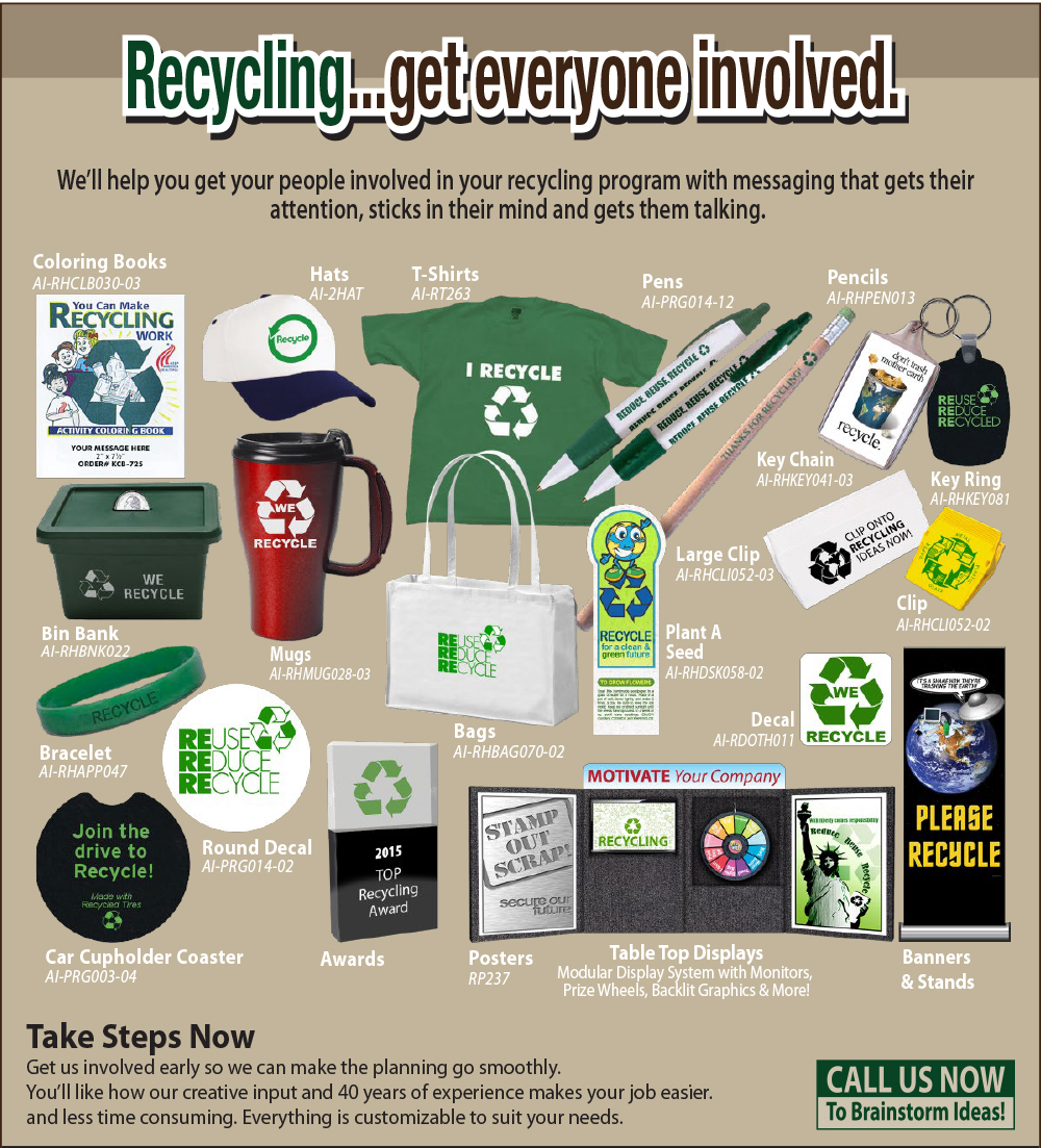 Custom Designed Recycling Marketing Materials THE RIGHT MESSAGE ON THE RIGHT PRODUCT BUILDS RAPPORT, INSPIRES ACTION, AND DRIVES RESULTS.